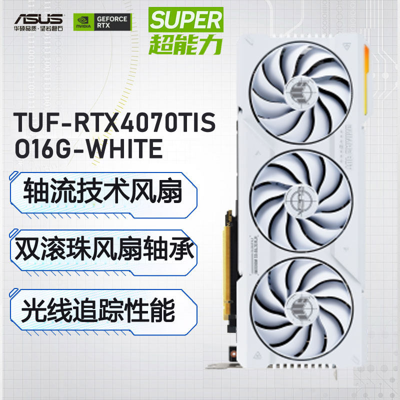 【中端 白卡】华硕TUF-RTX4070TIS-O16G-WHITE-GAMING电竞特工电脑游戏独立显卡