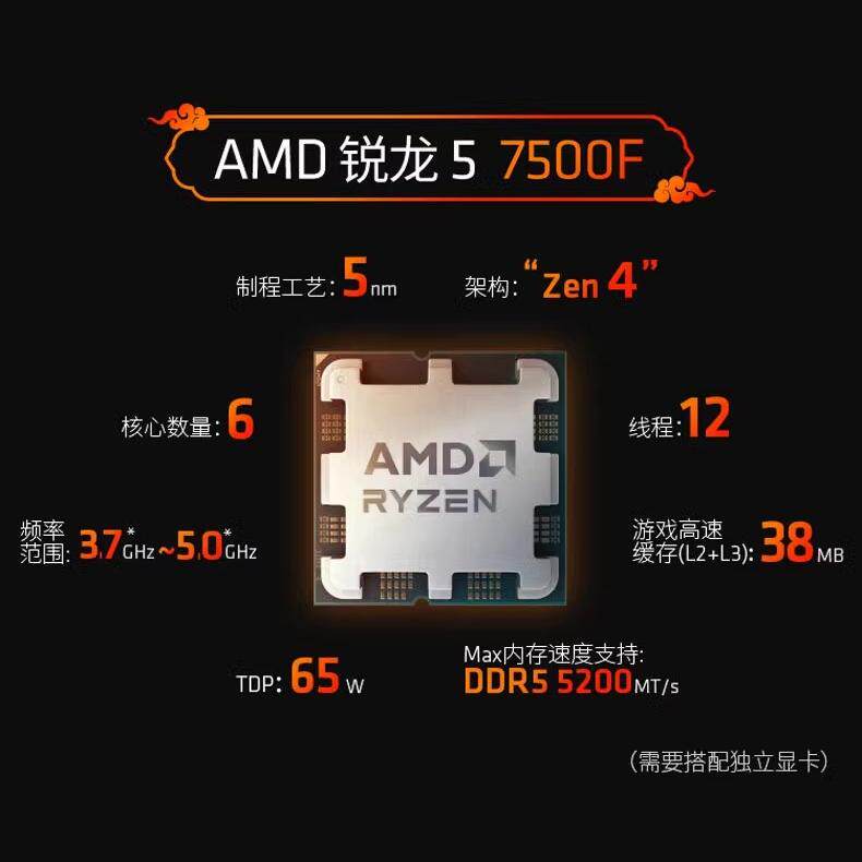 AMD锐龙5 7500F 7600X 7600X3D 中文盒装CPU处理器 全新正品行货