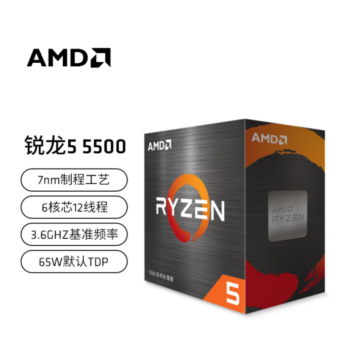 AMD 锐龙5 5500 处理器(r5) 6核12线程 3.6GHz AM4接口 盒装CPU