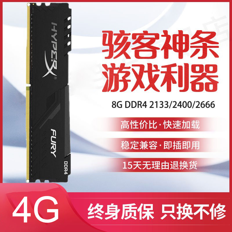 金士顿DDR4四代4G骇客神条2400 2666 2133台式机内存兼容条