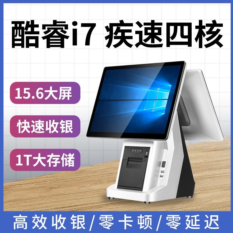 酷睿I7双屏收银机一体机触摸屏奶茶餐饮超市便利店烟草云收款机